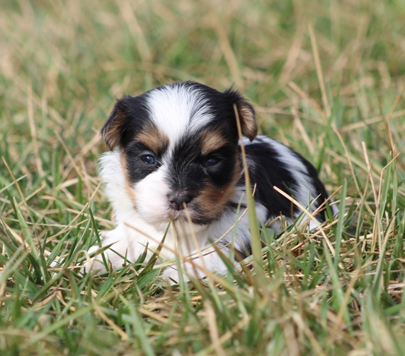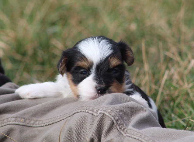 About his parents: Cory (father) is black & white and weighs 14 pounds. Aida (mother) is tan & white and weighs 12 pounds.