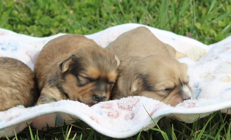 About their parents: Ozzy (father) is gold and sable and weighs 14 pounds. Kenya (mother) is sable and white and weighs 13 pounds.