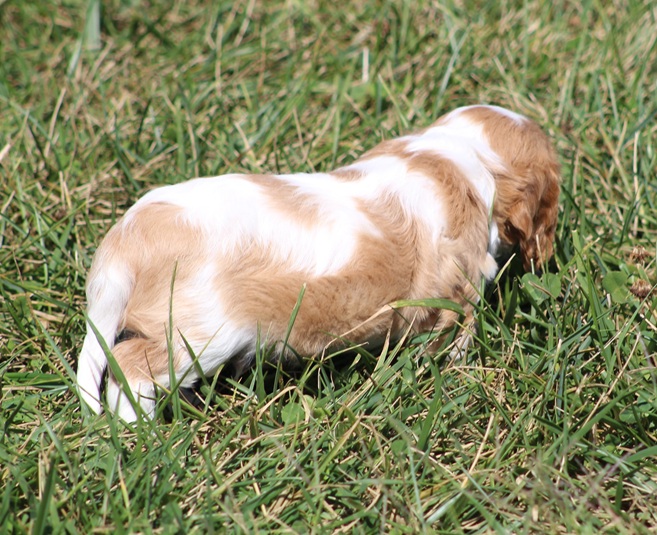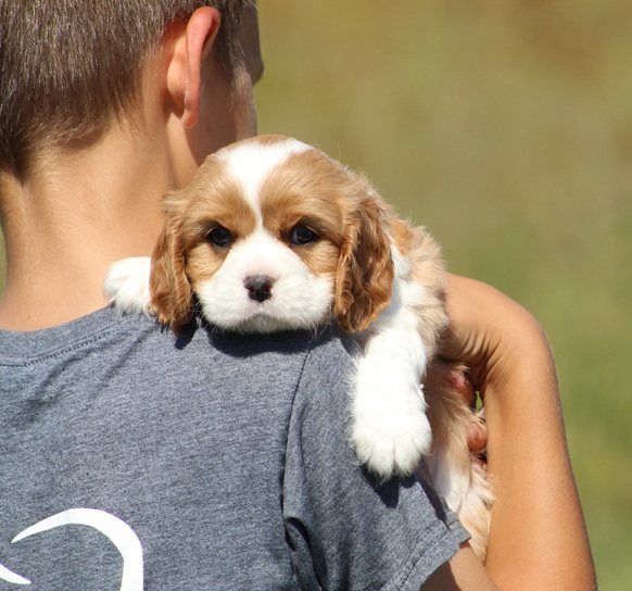 About his parents: Lantz (father) is blenheim and weighs 17 pounds. Cassidy (Mother) is tri-color and weighs 14 pounds.