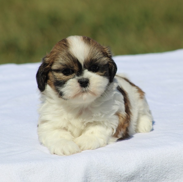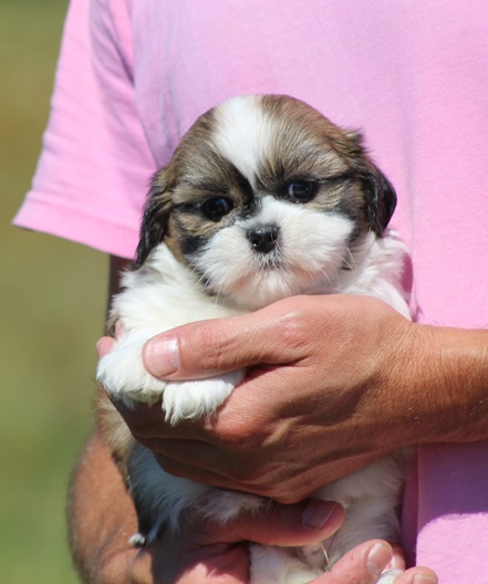 About his parents: Benji (father) is tan & white and weighs 14 pounds. Sally (Mother) is brindle & white and weighs 12 pounds.