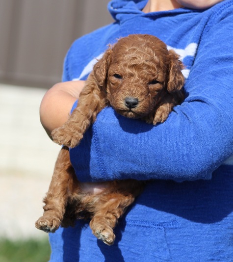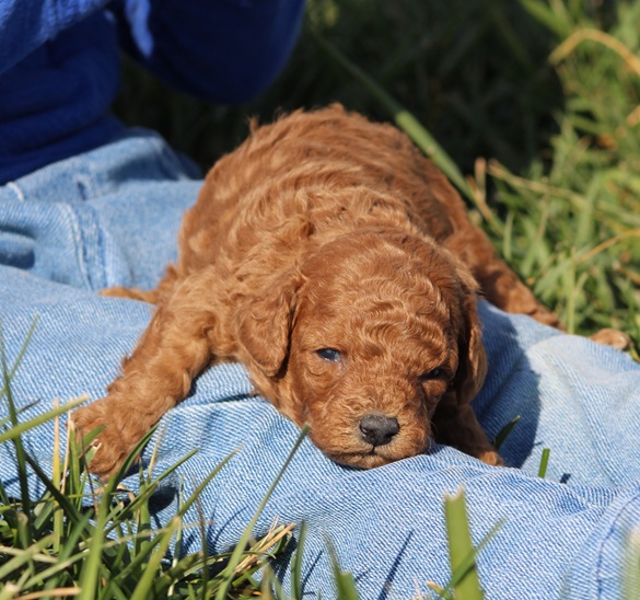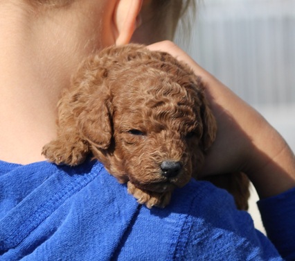 About his parents: Jesse (father) is red and weighs 7 pounds. Elsie (Mother) is apricot and weighs 8 pounds.