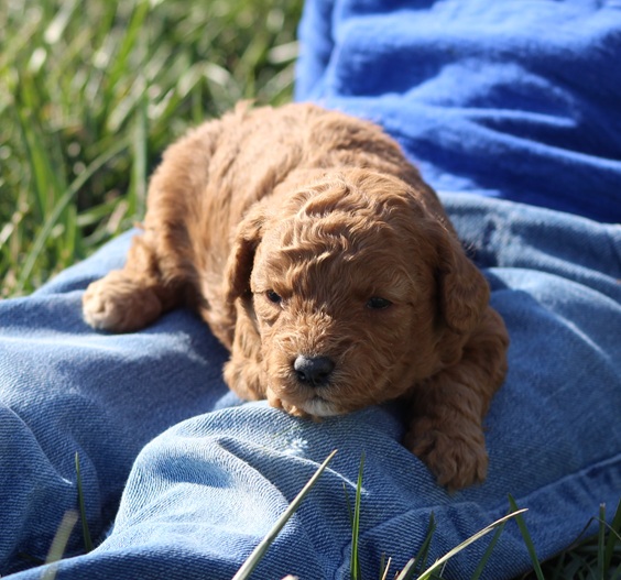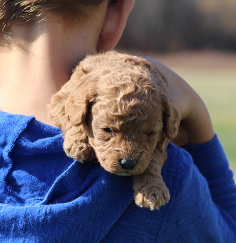 About her parents: Jesse (father) is red and weighs 7 pounds. Elsie (Mother) is apricot and weighs 8 pounds.